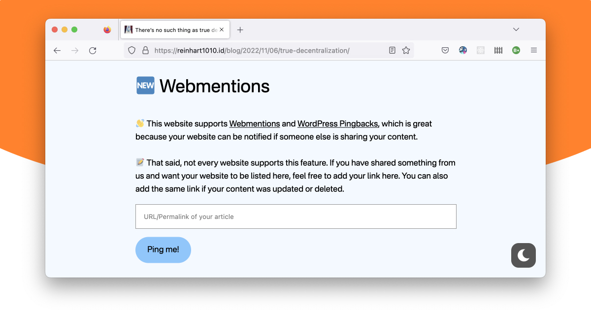 👋 This website supports Webmentions and WordPress Pingbacks, which is great because your website can be notified if someone else is sharing your content.