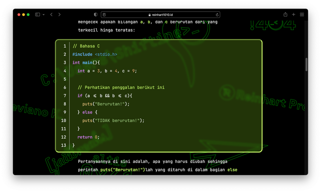 Oh yeah, don't forget to printf() the answer to Reinhart's Discord (reinhart1010#3583) or LINE (reinhart1010) account. And make sure that you're answering the right question/challenge given by him - 'cause we're against cheating among groups!