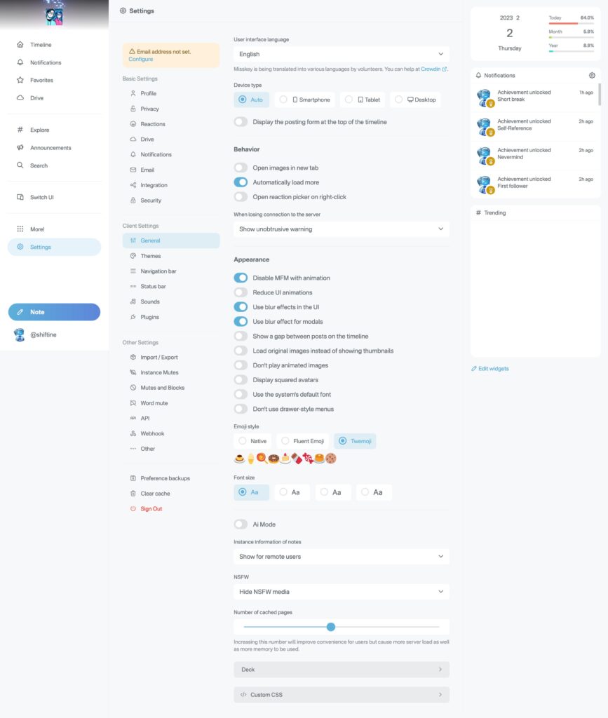 From here, you can set up custom CSS to fine-tune how Misskey would look the best for your eyes. CSS itself is a computer language to let you style any websites, and every web developer today should already be familiar with the language.