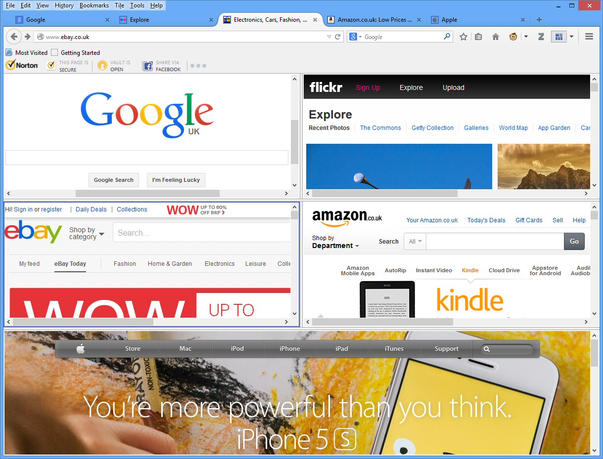 Check out the Tile Tabs WE, one of the Firefox extensions that was made to replace the older, XUL-based Tile Tabs extension which had become popular during the old days of Firefox. In the original Tile Tabs extension, tiled tabs are organized in one single window like this: