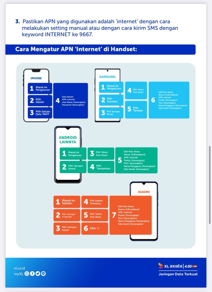 - Beberapa perangkat jaringan seluler XL Axiata dan AXIS masih memiliki konfigurasi APN lama yang melibatkan alamat proxy