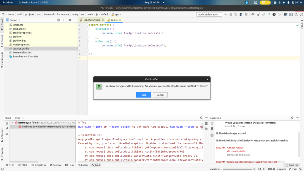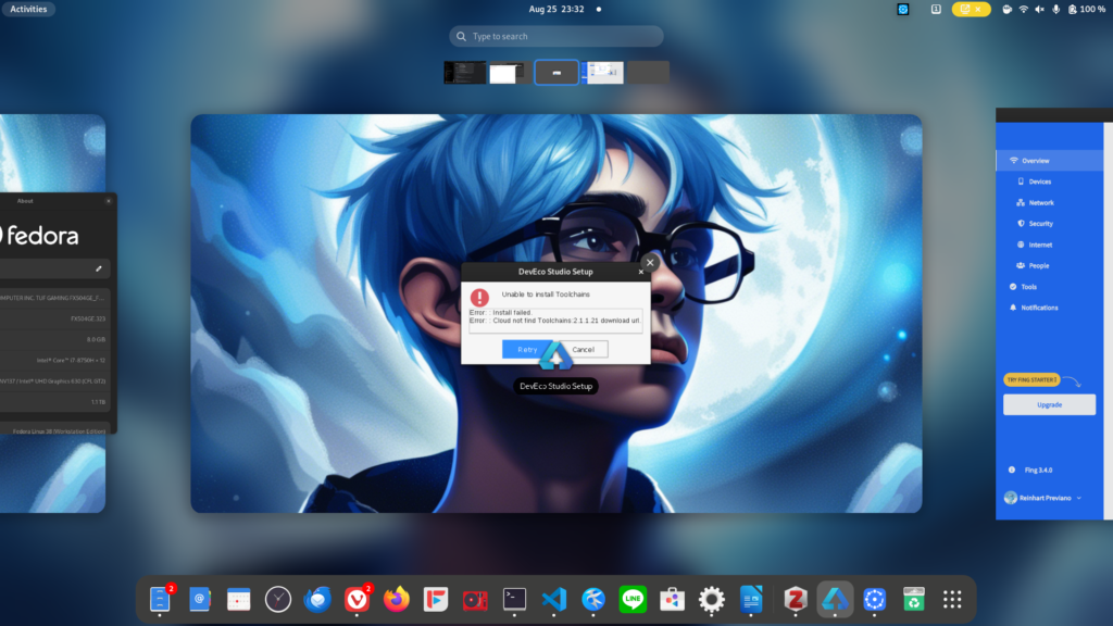 Oh yeah, I’m running Fedora, which means that I cannot install the official Linux version of DevEco Command Line Tools, which is simply a huge shell script requiring you to have apt installed on your system. Fedora doesn’t include that tool.