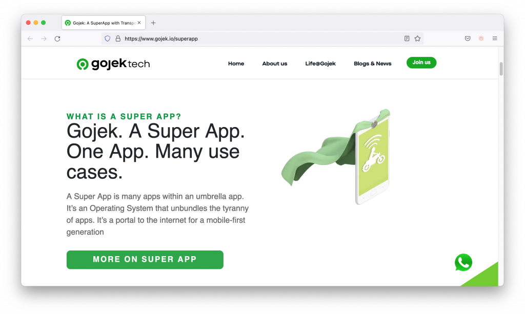 Its super app ambitions, and the record for being the first unicorn startup in Indonesia, have encouraged and made every local startup to be unicorn as well 🦄 Oh right, one of the Gojek's motto here is "Build startups within a startup".