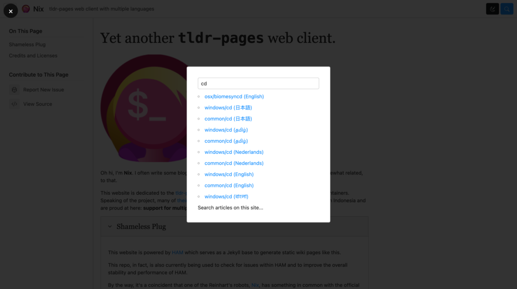 Well, did you see something annoying here? Since there are many documents which are bearing the same name (albeit with different languages), it becomes more difficult to search for shorter commands such as cd.