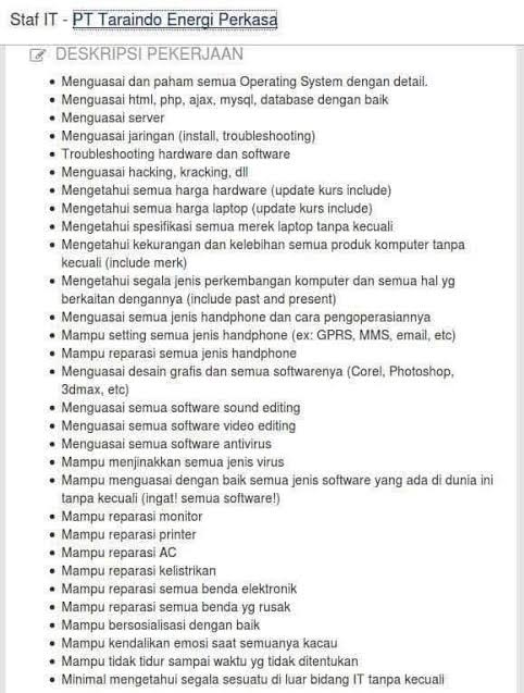 It was even filled by a faux Pricing Plans page; but instead of showcasing pricing tiers and benefits, it compares Reinhart’s skills against the requirements of Bank SulutGo (BSG), Kawasan Industri Makassar (KIMA), and Taraindo Energi Perkasa (TEP), three companies that posted “IT Staff” job offers, only to be criticized by the public for requiring such otherworldly skills, including “the ability to repair every electronics and any broken objects.”