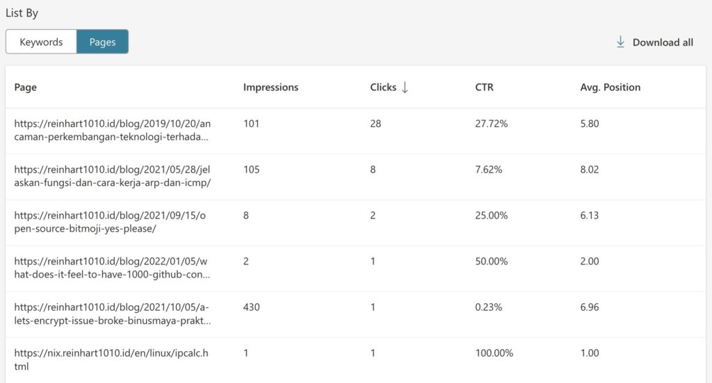 If that still doesn't makes you interesting enough, well, that single blog post generated almost 2.7 thousand impressions, just on Google Search! And what the heck, that single post somehow shows up at the 2nd to 5th Google Search result link!