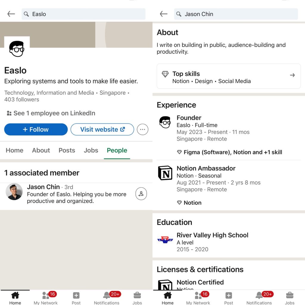 But will Easlo continue to succeed in a post-Notion world? A quick LinkedIn search around the founder and the company clearly shows this guy’s first and only listed professional work experience is building Notion templates since the start of his career.