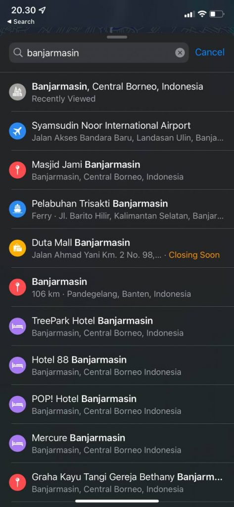 This is also the reason why search results for "Banjarmasin" (the capital city of South Kalimantan) is said to be on the Central, and "Pontianak" (the capital city of West Kalimantan) is said to be on the South, according to both Apple Maps, and sometimes DuckDuckGo, too!