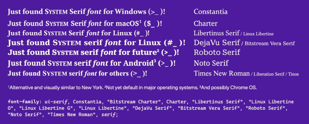 Oh wait, didn’t we tell you the fallback serif fonts for macOS and Apple platforms for browsers that don’t support New York?