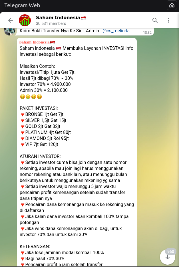 Tolol sekali kalau admin (grup palsu) HQSahamIDX sendiri yang mempostingnya, bisa dilihat di https://t.me/HQ_SAHAM_IDX/57149...