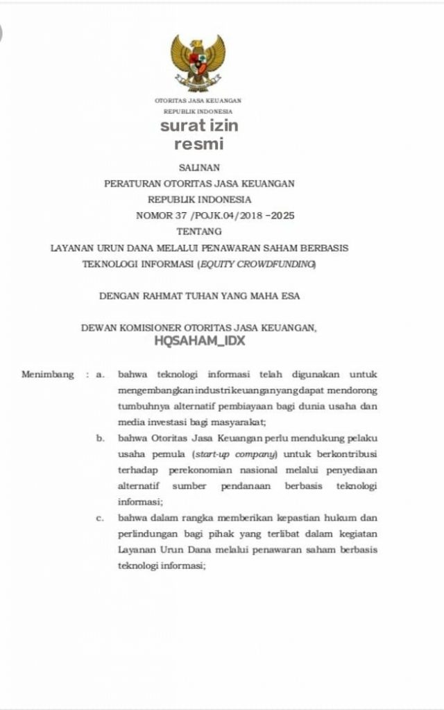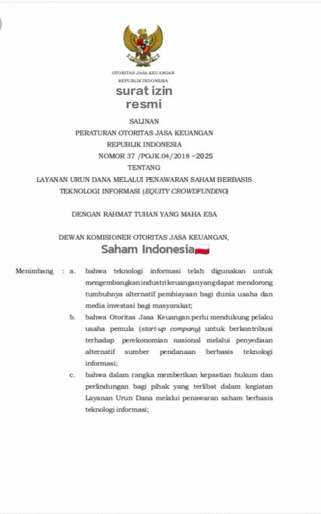 Ada satu hal lagi yang menurut saya konyol di grup palsu ini. Pada tanggal 24 Maret, admin yang sama memposting sebuah "surat perizinan" yang berupa editan mark-up dari Peraturan Otoritas Jasa Keuangan (OJK) Nomor 37/POJK.04/2018, yang seolah-olah memberikan izin terhadap grup palsu ini untuk menjual produk investasi hingga tahun 2025. Lihat aja deh, pokoknya ngakak banget hasil editannya...