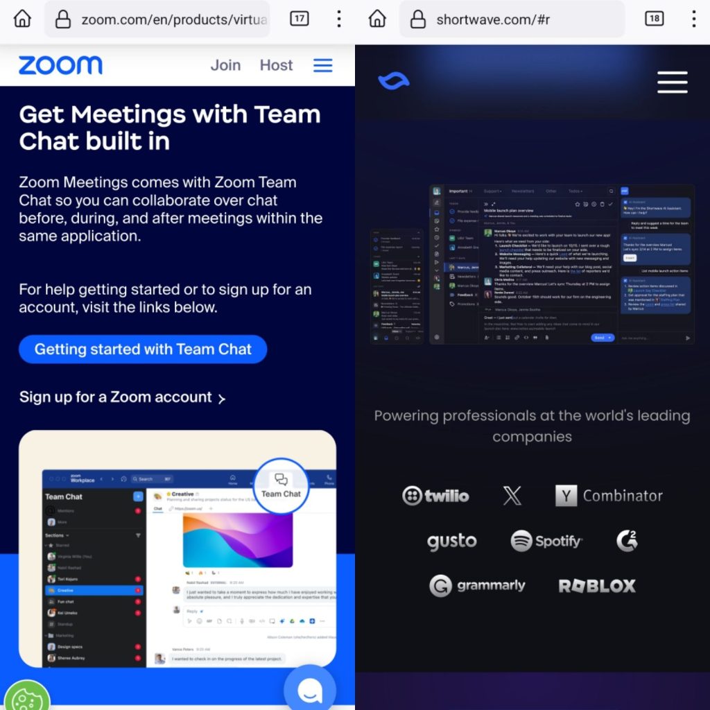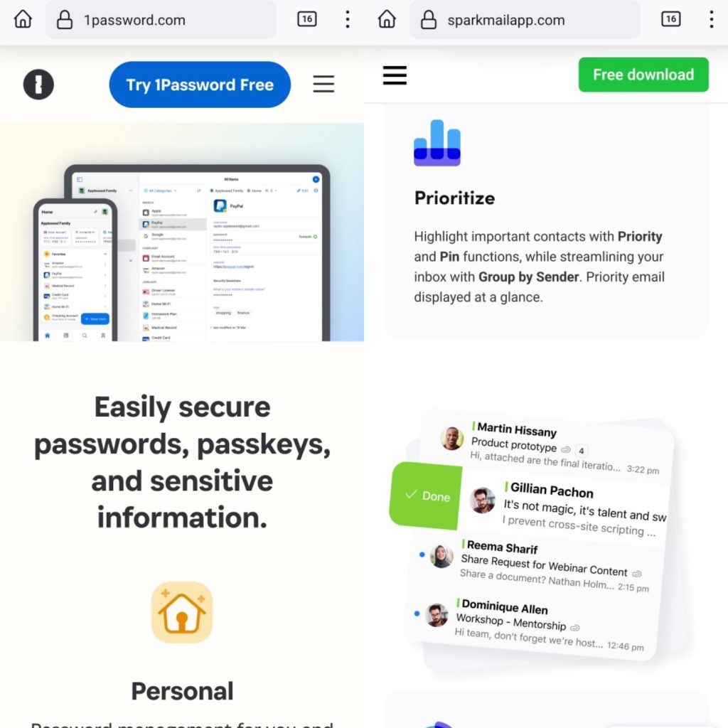 We tend to forget that a handful of “productivity” tools that we may use today: 1Password, Any.do, Notion, Zoom, yet the lesser-known ones like Spark Mail and Shortwave, still presents those iPhone, iPad, or Mac-based screenshots even though you’re not browsing on one (these screenshots are taken from Firefox on Android):